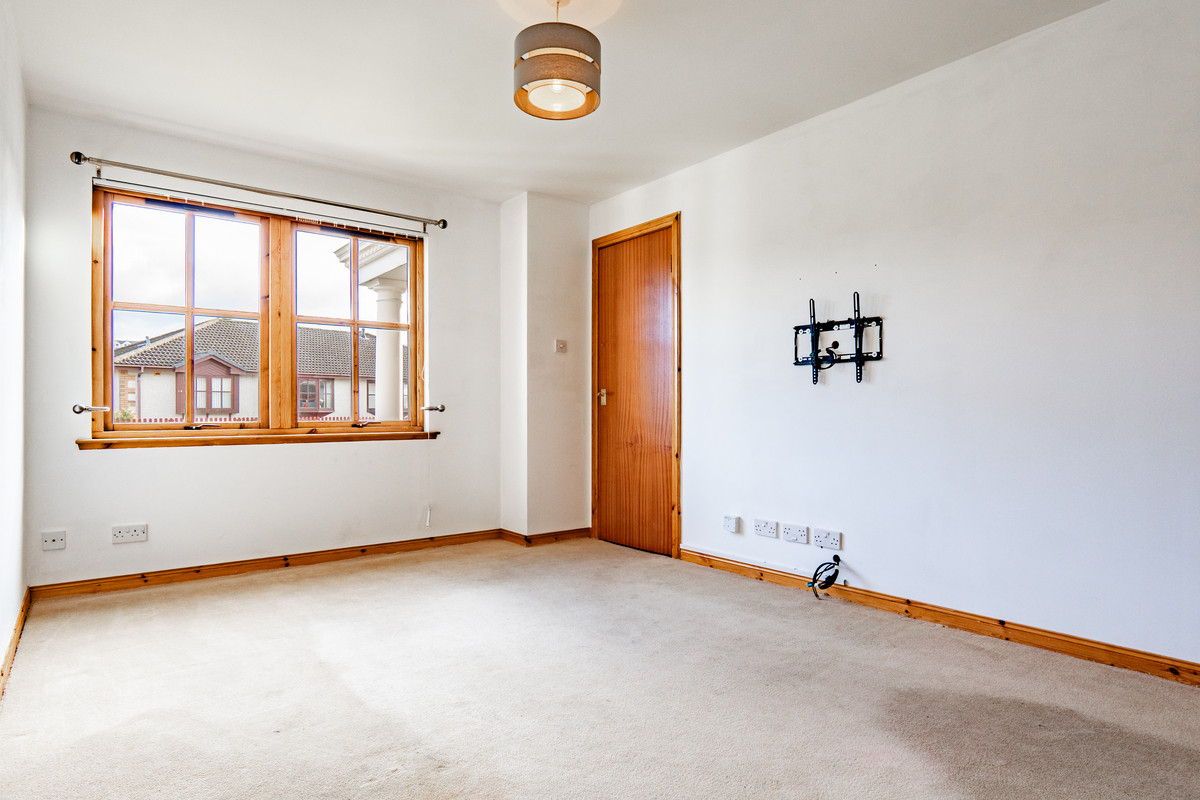 Stepping inside, the sitting room extends across the front of the house, its large window drawing in plenty of natural light and creating a bright, airy feel. White painted walls enhance the sense of space, while natural wood finishes around the doors, skirtings and window frame add warmth and character. The layout is simple and versatile, allowing for a range of furniture arrangements to suit modern living.