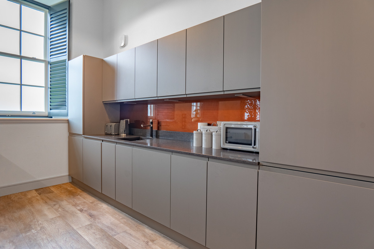 All furnishings within the flat are included in the sale, making it easy for a new owner to move straight in and enjoy the top end finish from day one. A reminder of the building’s nineteenth century origins is the solid stone walls measuring around 900 mm thick, while the windows have been upgraded to timber framed sash and case units with double glazing. The flat is heated by a gas fired central heating system with radiators throughout. The boiler sits neatly within the kitchen and supplies both heating and hot water on demand. The block enjoys communal grounds and a shared car park, providing convenient outdoor space and parking without the need for individual maintenance.