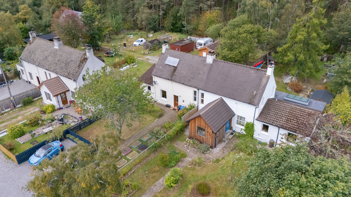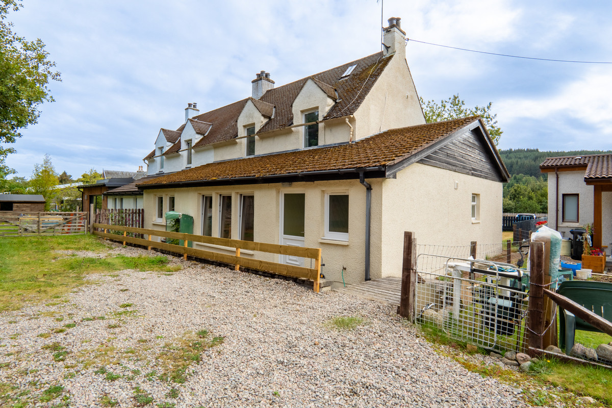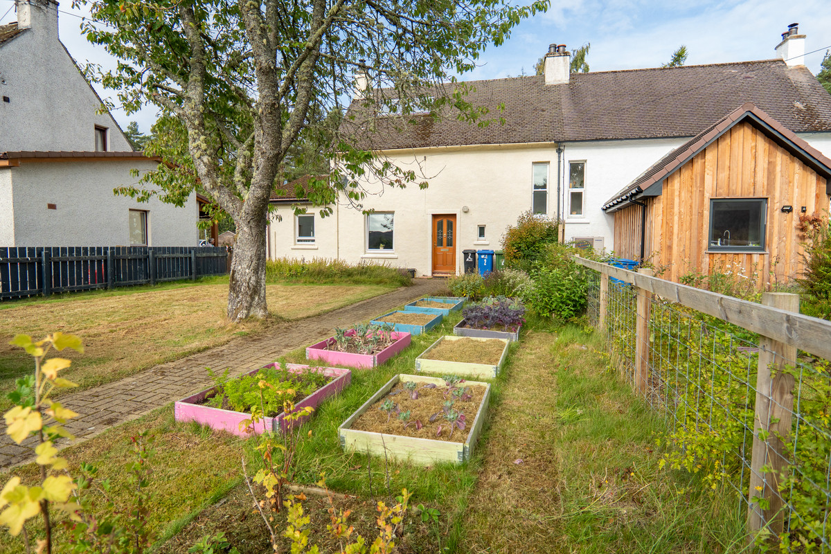 2 Farr Cottages is a traditional home that can easily adapt to family living, home working or creative pursuits. Built around 1960, this one and a half storey semi-detached house provides a surprising amount of space across its 131m² floor area, complemented by generous gardens and an outbuilding with power.