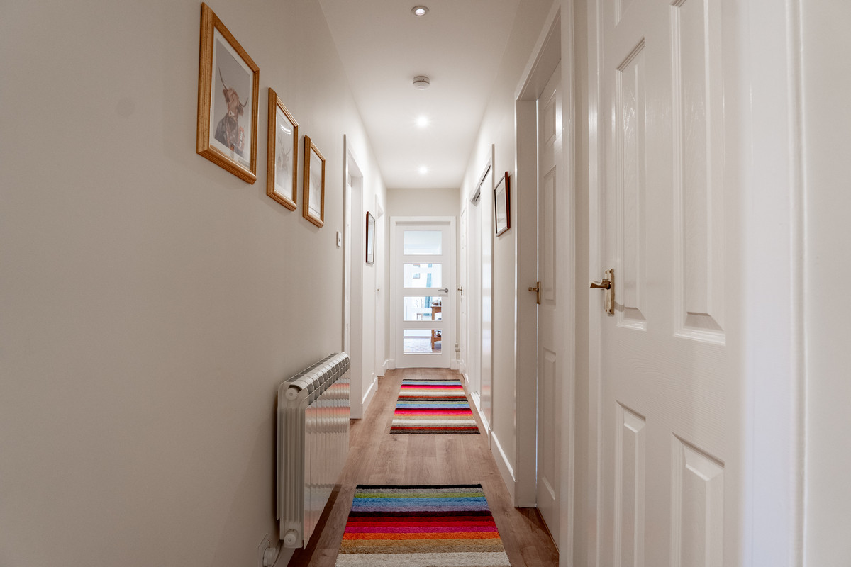 Set on a quiet private plot just a stone’s throw from the beach and neighbouring golf course, this substantial four bedroom bungalow offers a rare opportunity to enjoy single storey living in one of Fortrose’s most desirable coastal locations. Discreetly tucked away within the peaceful Fiery Hillock development, the home combines generous indoor space with wraparound gardens, a double garage and the daily luxury of seaside air. Local amenities, scenic walks and village charm are all close at hand, while recent upgrades – including a modern kitchen and solar panels – add real substance to the home’s appeal.