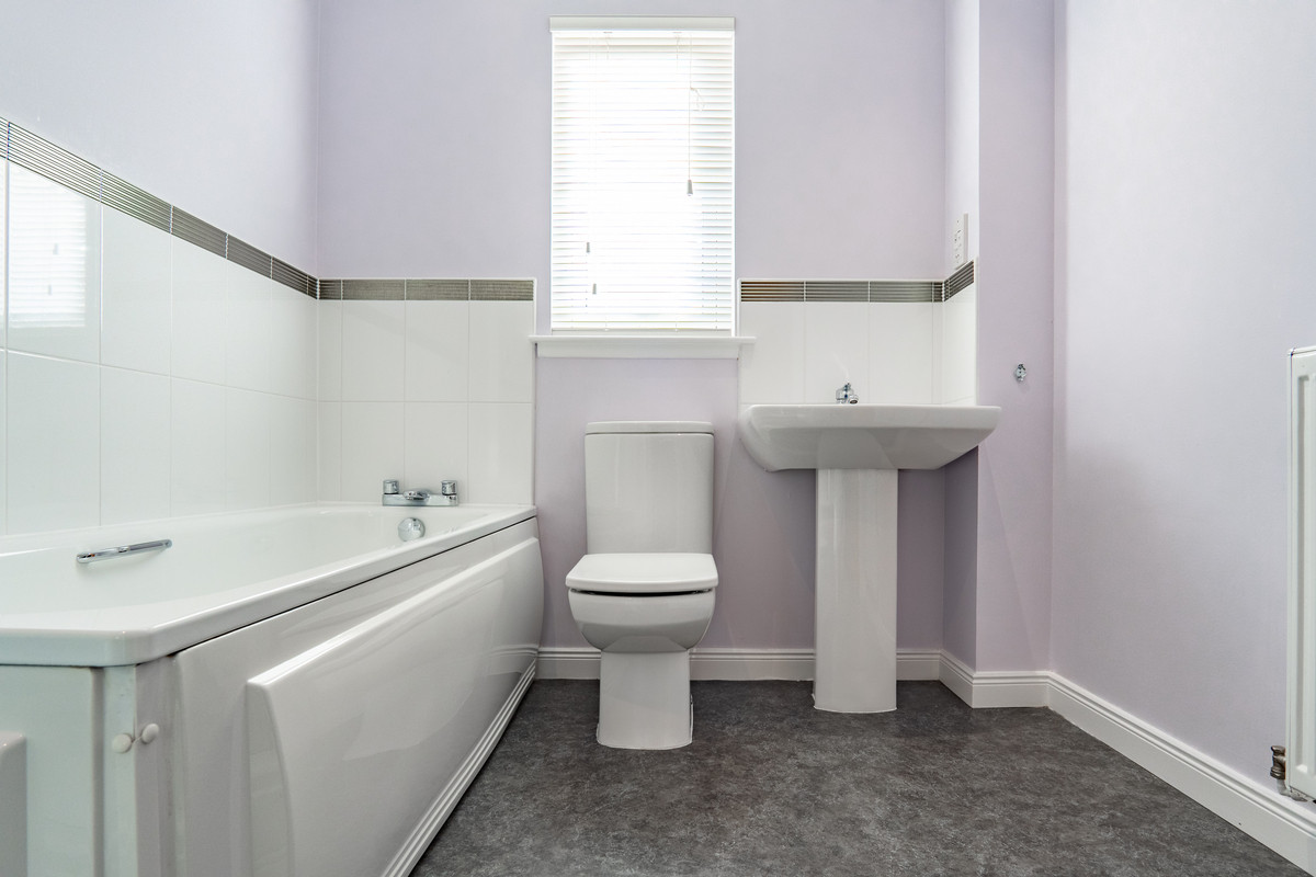 Also on the ground floor is a neatly finished WC, decorated in soft lilac tones with a white suite and a tiled splashback above the basin. A window brings in natural light, keeping the space bright and fresh. Having a cloakroom at this level is always a practical advantage, especially for guests or busy family mornings when everyone’s on the go.