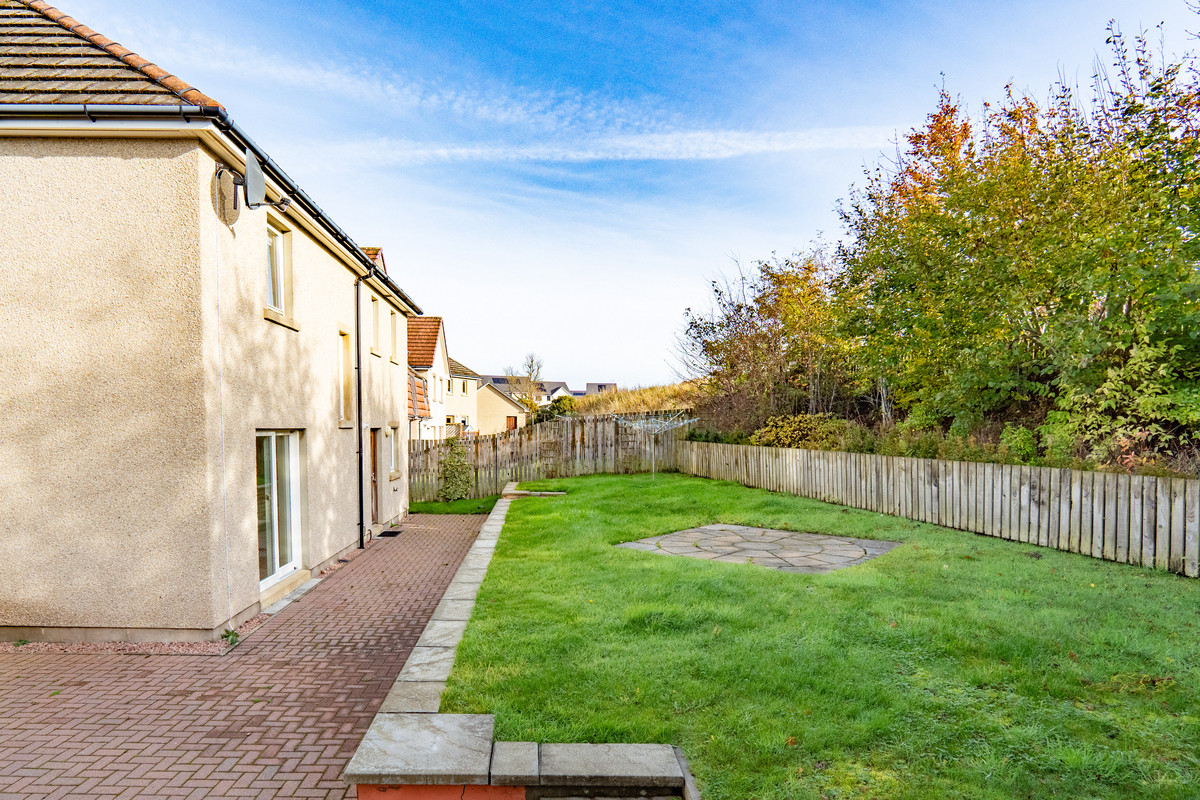 Outside, the rear garden offers a good mix of space and practicality, with a loc-bloc patio stretching the length of the house and a raised lawn just beyond a low retaining wall. It’s a simple, tidy area that’s easy to maintain and ideal for children to play or for pets to roam. The property also includes garden space to the front and side, adding a sense of openness around the home.