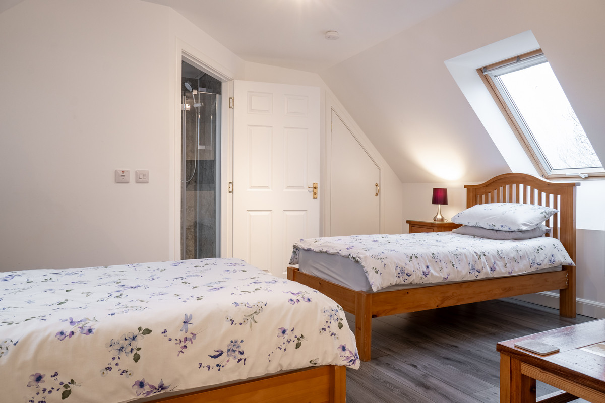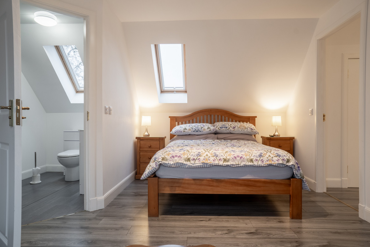 The upstairs level offers a generous and well-planned layout, making it ideal for guests, teenagers or independent family members. This floor comprises three spacious bedrooms, a versatile additional room and a convenient kitchenette area on the landing, complete with storage cabinets, a worktop and an under-counter fridge.