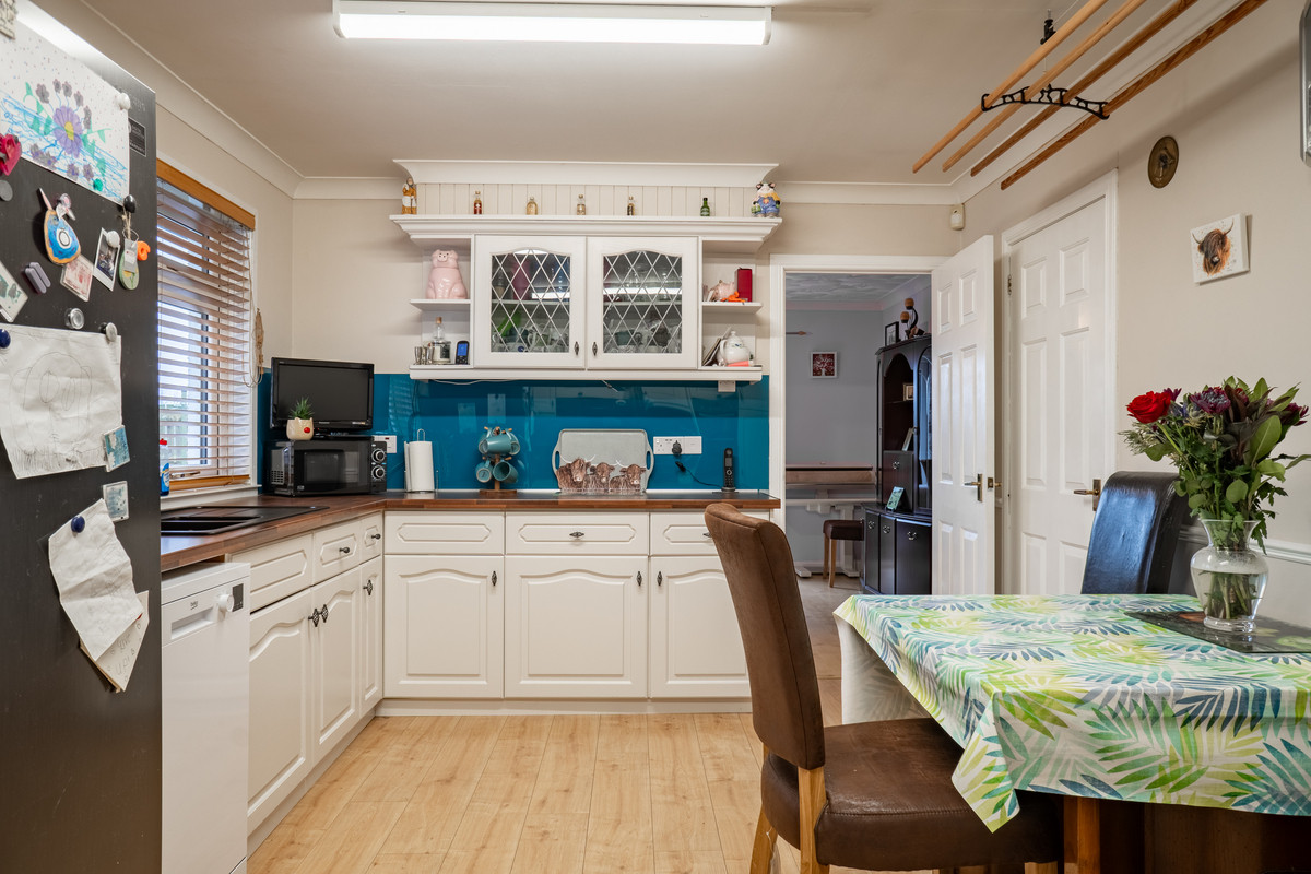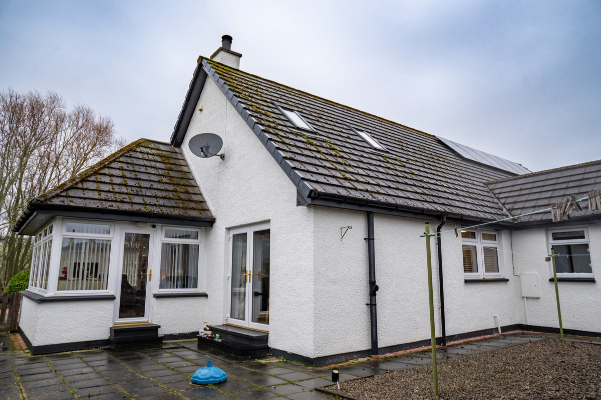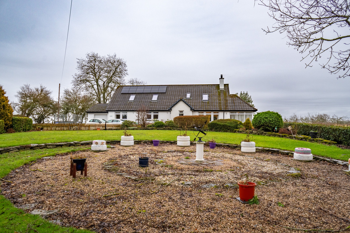 Outside, Kilberry sits on a vast plot, surrounded by lush gardens, hedges and patio areas. The gravel driveway leads to the attached garage, while the timber sheds provide additional storage. The garden’s generous size offers potential for landscaping, gardening or even keeping animals, making it ideal for those who love the outdoors.
