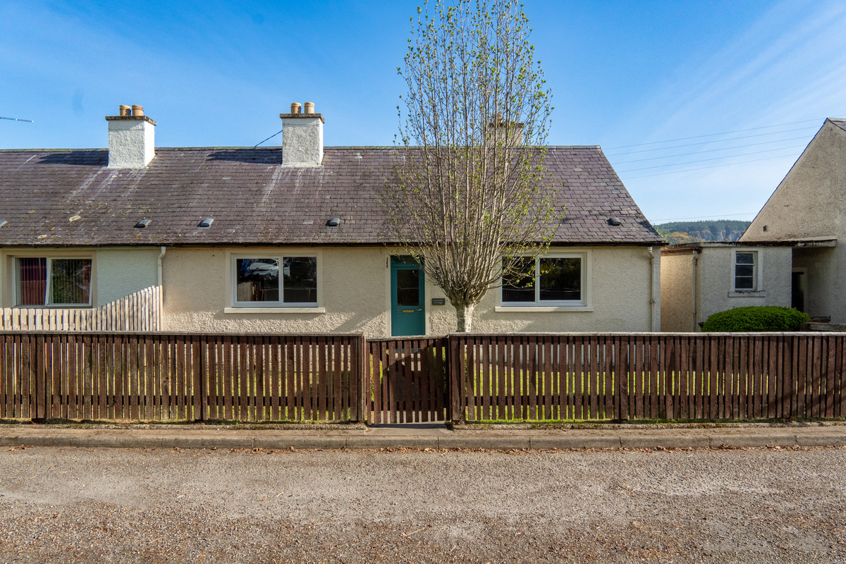 The cottage sits off the main road through the village and has a well-kept front lawn, neatly enclosed by timber fencing and hedging. A paved pathway leads directly to the front entrance adding to the tidy and welcoming first impression.
