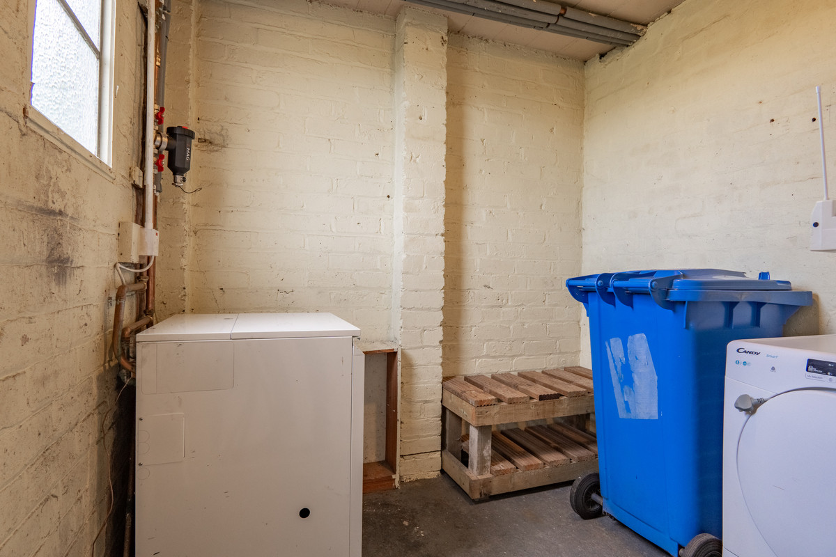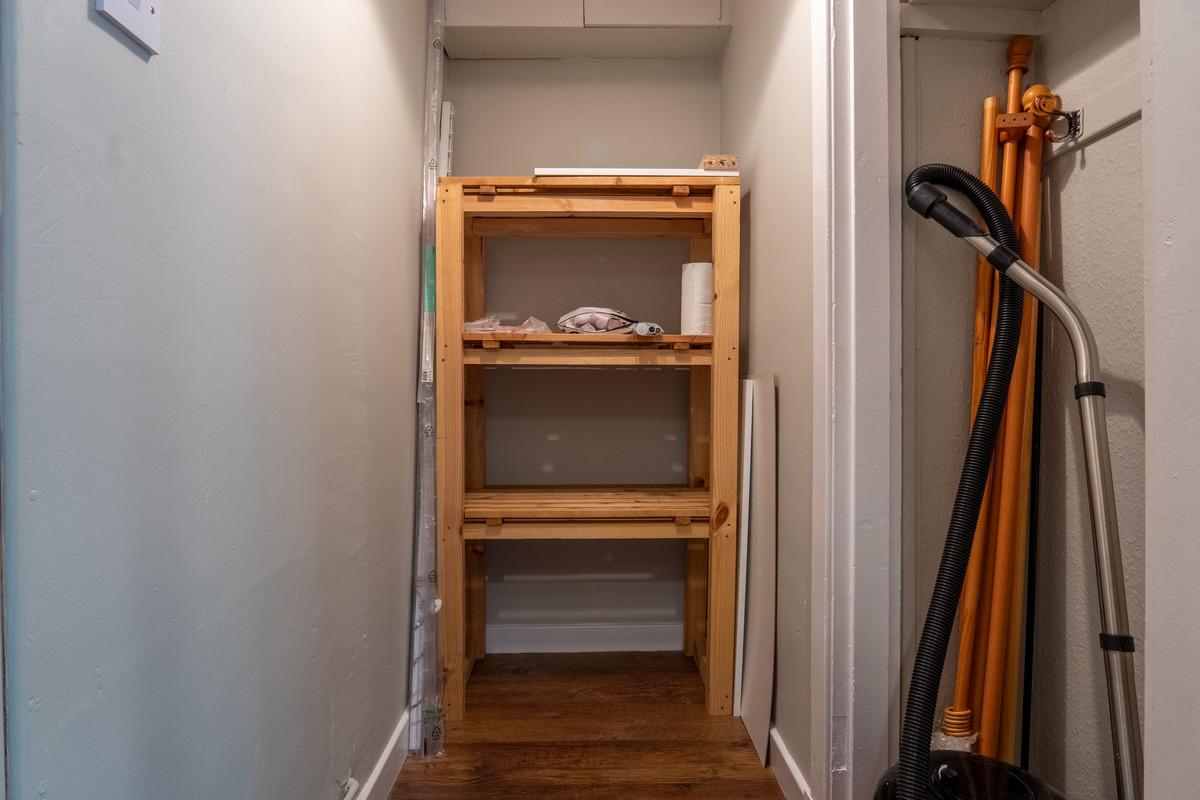 The separate lounge is a comfortable and spacious room with ample space for sofas, media units and other furnishings. A window to the front frames views of the garden, while a radiator beneath adds warmth. Off the lounge is a large walk-in storage cupboard, ideal for storing appliances and other general household essentials.