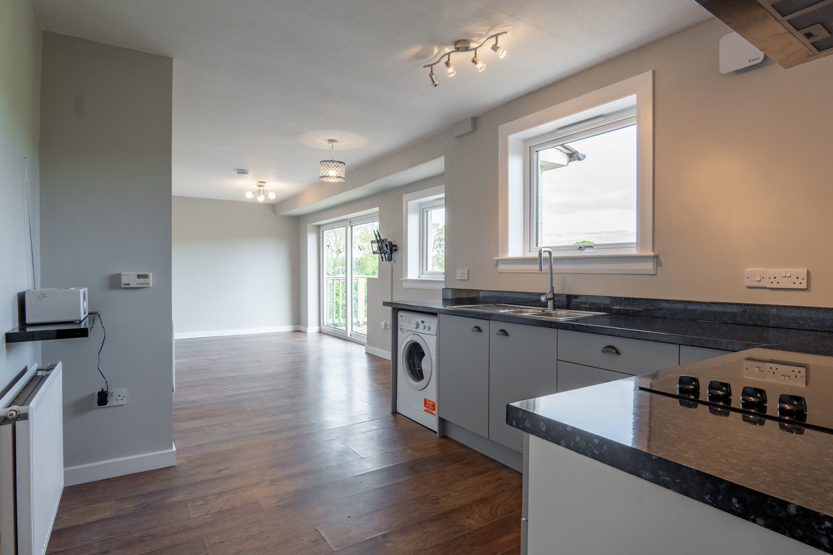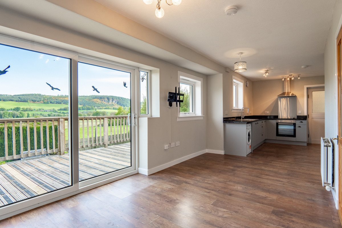 Located in a quiet and picturesque rural setting, Crombie Cottage, is a bright and modern home with flexible space and outstanding views. This semi-detached, single-storey bungalow has been thoughtfully converted in a contemporary style, making full use of natural light and emphasising its countryside surroundings.