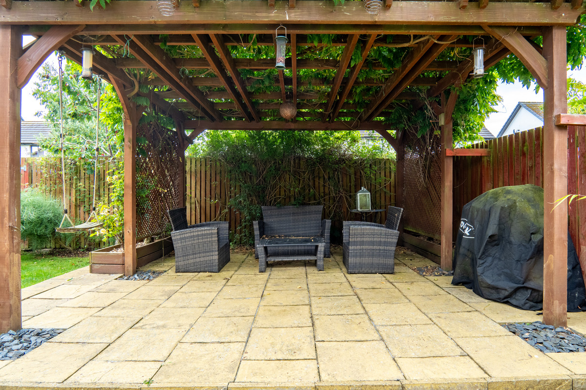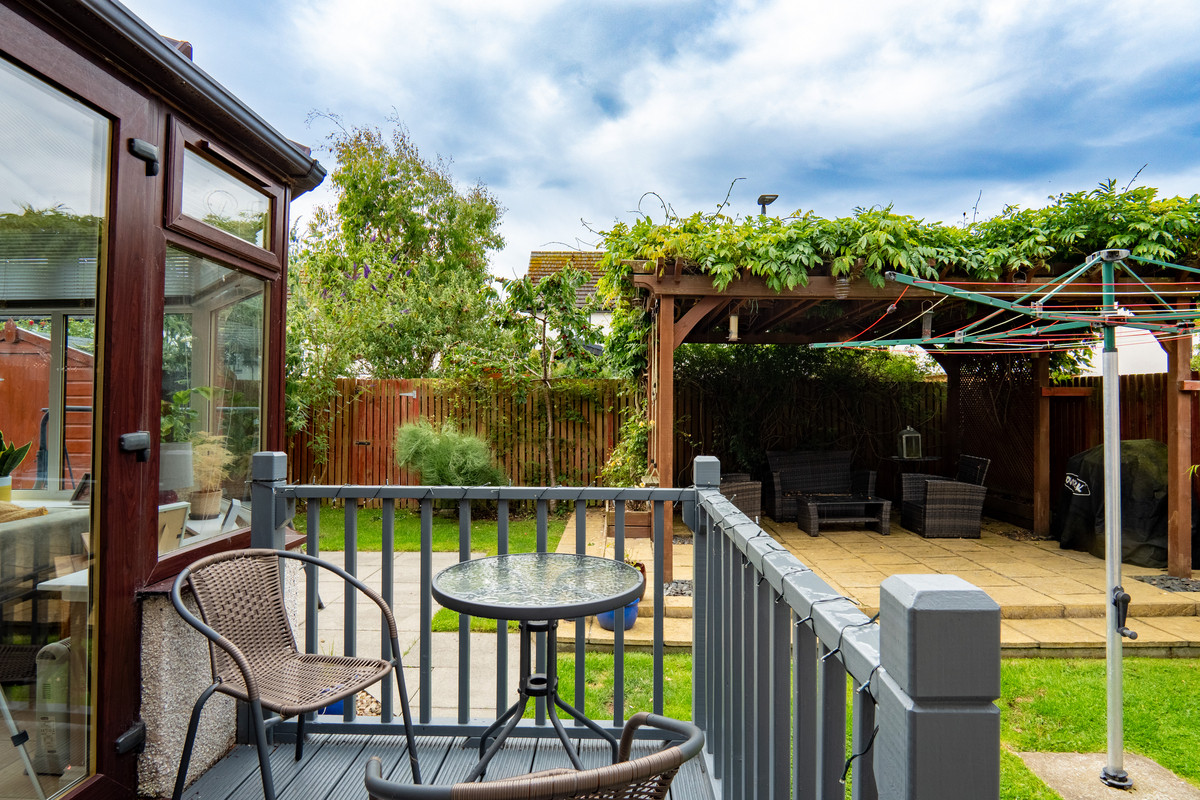 Outside, the gardens surround the home on three sides. The front is laid to lawn with a block-paved driveway leading to the integral garage, while a concrete ramp ensures easy access to the front door. To the rear, a raised timber deck outside the conservatory makes the ideal spot for morning coffee, while further back, a large paved patio sits beneath a leafy pergola, making it perfect for al fresco dining or evening drinks. There’s another patio area to the side and a timber shed in one corner. The garden is interspersed with lawn, mature shrubs with tall timber fencing surrounding for privacy.