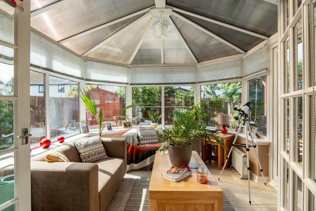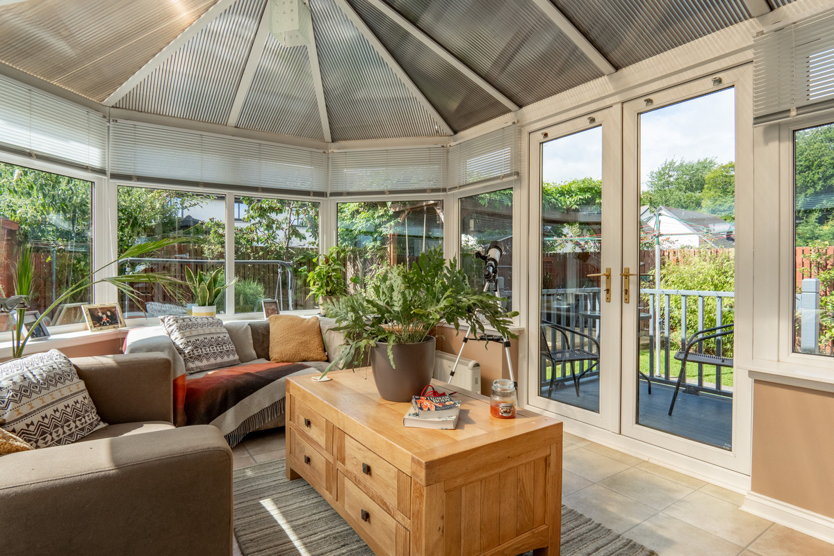 The conservatory itself is a fantastic addition, large, bright and surrounded by garden views. Cream floor tiles and uPVC framing combine with the polycarbonate roof to ensure this space is both practical and pleasant all year round. Double doors open directly to the garden, making this a wonderful area for relaxing, entertaining or simply enjoying the natural light.