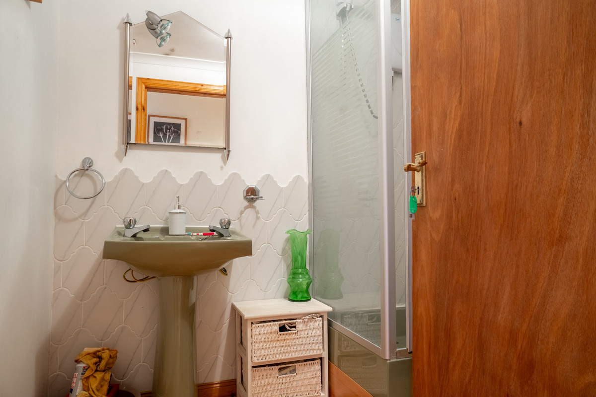 For added convenience, a separate shower room is also located on this floor. Fitted with a shower cubicle and electric shower, as well as a matching green toilet and sink, this additional facility helps ease the morning rush, ensuring comfort for a large family or visiting guests. Whether maintaining the property’s traditional aesthetic or modernising to suit contemporary tastes, these spaces offer endless opportunities to create a dream home tailored to your vision.
