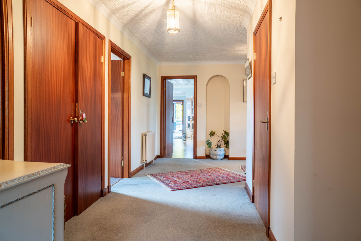 Outside the gardens feature well-maintained lawns, mature shrubs and colourful flower beds, adding natural beauty and privacy. A gravel driveway offers ample off-street parking for multiple vehicles. Additional features include uPVC double glazing and an efficient oil-fired heating system that serves both the main house and annexe, ensuring year-round comfort.