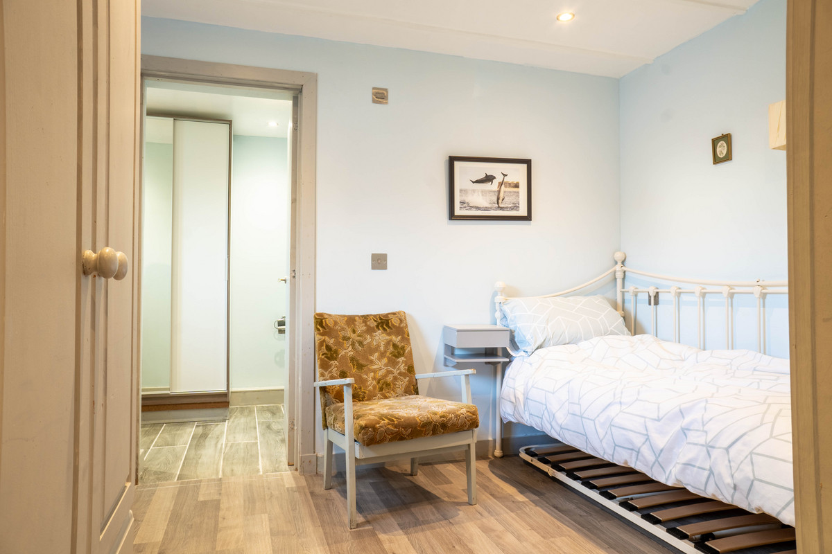 The separate, fully equipped two-bedroom annexe, The Haven, has been thoughtfully designed and beautifully maintained, offering a cosy and welcoming space that’s perfect for holiday lets or extended family use. With its own private entrance, the annexe remains entirely separate from the main residence, ensuring privacy for all. Inside you’ll find a modern fitted kitchen with black worktops and sleek white cabinets, a comfortable living room and two well-sized bedrooms, one of which features an en-suite shower room. This charming addition, ideal for Airbnb or rental use, also offers a potential annual income of up to £40,000, making it an appealing investment opportunity.